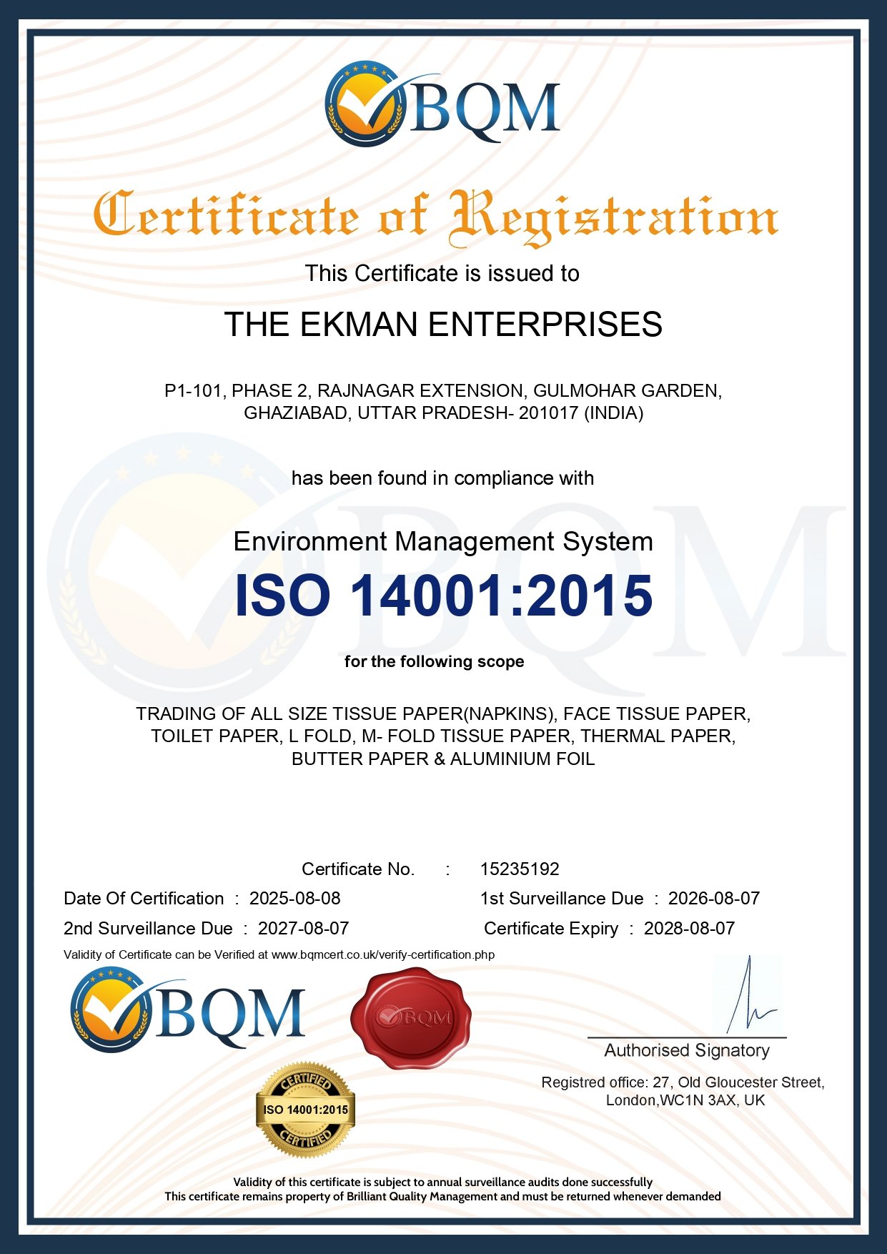 At The Ekman Enterprises, we specialize in providing high-quality paper products to meet diverse needs, including all sizes of Tissue Paper, Toilet Paper, Kitchen Towels, L-Fold, M-Fold, Face Tissue Paper Boxes, Bamboo Pulp Paper, and Thermal Paper. Our commitment to quality, hygiene, and consistency has made us a reliable partner for households, offices, hospitality businesses, and retailers.