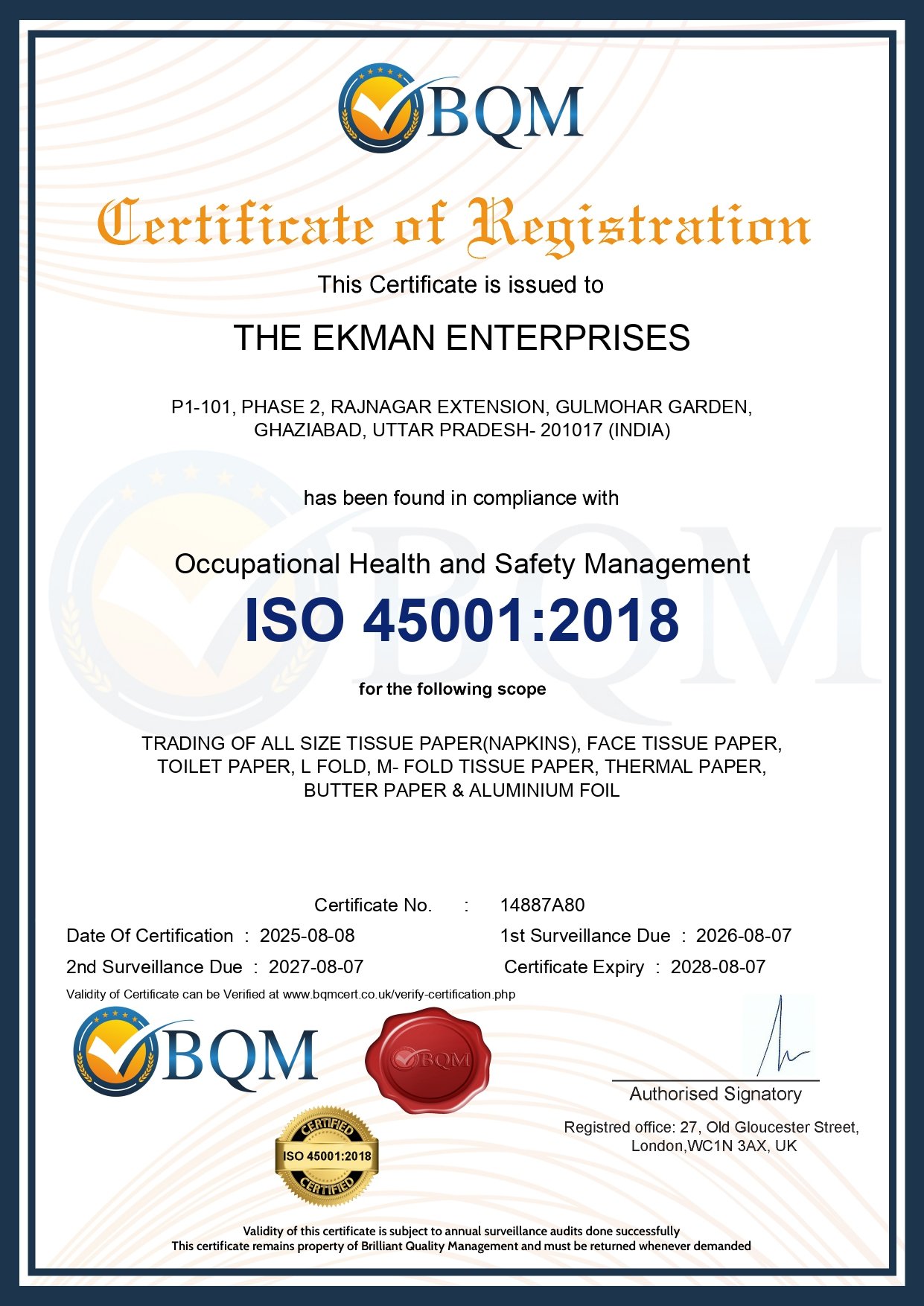 Choose THE EKMAN ENTERPRISES – brand MANTREX – for premium hygiene paper products that blend softness, strength, and durability. Our range includes eco-friendly bamboo pulp options. ISO 45001:2018 certified, we ensure quality, safety, and timely delivery, making us a trusted choice for homes, offices, and businesses across India.